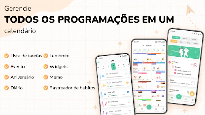 Diga adeus à necessidade de navegar por inúmeros apps para manter sua vida em ordem. CALENDAR CUTE é o seu companheiro digital completo, funcionando como um caderno inteligente que integra perfeitamente um calendário robusto, um planejador de tarefas detalhado, um espaço para anotações rápidas, um diário pessoal e um rastreador de hábitos. Seja para organizar tarefas complexas do trabalho, lembrá-lo de beber água, planejar sua rotina de exercícios ou monitorar o progresso em um novo idioma, este aplicativo centraliza todas as suas necessidades. Com CALENDAR CUTE, você melhora sua produtividade, otimiza seu tempo e constrói uma rotina mais equilibrada e satisfatória.