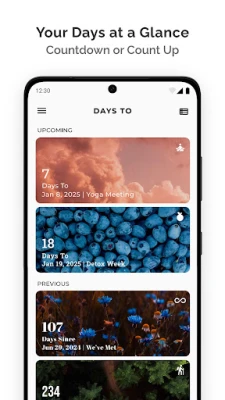 Nunca mais perca um momento precioso da sua vida com Days To Countdown, o seu companheiro essencial para celebrar e antecipar cada marco. Este aplicativo intuitivo transforma sua tela inicial em um centro dinâmico de lembretes, exibindo contagens regressivas e progressivas de eventos importantes. Desde aniversários e feriados até projetos e metas pessoais, Days To Countdown garante que você esteja sempre conectado aos ritmos da sua vida, com notificações personalizáveis que o alertam no momento certo, evitando qualquer esquecimento e mantendo-o organizado sem esforço.