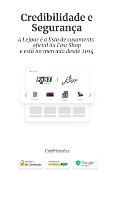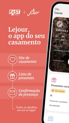 A escolha de Lejour é sinônimo de confiança e segurança. Como um aplicativo do renomado Grupo Fast Shop, uma marca com mais de 35 anos de trajetória e credibilidade no mercado brasileiro, garantimos a integridade de todas as transações e informações. Sua tranquilidade é nossa prioridade. E para qualquer dúvida ou assistência, conte com nossa equipe de atendimento exclusiva. Nossos especialistas estão sempre à disposição para oferecer suporte dedicado, seja por e-mail, chat ou WhatsApp, assegurando que sua experiência com Lejour seja impecável do início ao fim. Com Lejour, os noivos desfrutam de uma organização descomplicada, enquanto os convidados vivenciam uma experiência segura e acolhedora.