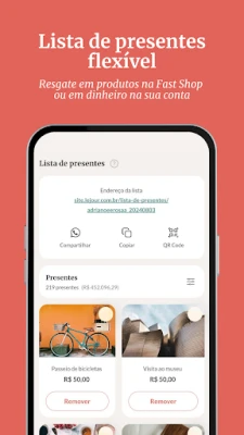 Além de um site deslumbrante, Lejour inova na forma de receber demonstrações de carinho. Diga adeus às listas tradicionais com nossa lista de presentes virtual em dinheiro, uma modalidade que oferece total liberdade. Converta desejos em fundos que você pode utilizar como e onde preferir, seja para a lua de mel dos sonhos, a mobília da casa nova, ou até mesmo para uma causa beneficente. Inspire-se em nossos mais de 20 modelos pré-definidos ou crie a sua lista do zero, com itens fictícios que representam seus planos. E para que você não perca nenhum instante dessa jornada, o aplicativo Lejour mantém você atualizado com notificações em tempo real: saiba quem confirmou presença, os presentes recebidos e acompanhe o saldo disponível para resgate com total transparência.