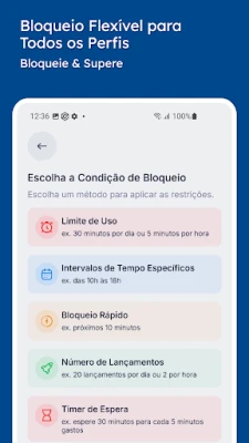 Com Mantenha o foco - App Blocker & Website Blocker, você assume o controle total do seu ambiente digital. Bloqueie facilmente aplicativos e websites que consomem sua atenção, incluindo e-mails e plataformas de mídia social, silenciando alertas e notificações para um foco ininterrupto. Vá além do bloqueio simples: defina limites de tempo de tela personalizados para organizar seu dia, garantindo que o tempo de qualidade seja realmente dedicado aos seus objetivos e à sua família. Para os momentos em que a força de vontade precisa de um impulso extra, ative o Modo Estrito, uma funcionalidade poderosa que impede a desativação do bloqueio, fortalecendo seu autocontrole e sua jornada para uma desintoxicação digital.
