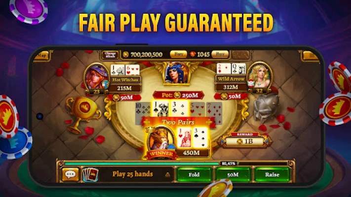 Sua aventura começa escolhendo o seu próprio campeão, ou aceitando o destino que o jogo propõe. Mergulhe em missões envolventes, descubra segredos e ascenda ao topo da classificação. Para aqueles que preferem a emoção direta do pôquer, existe o modo Livre, perfeito para aprimorar suas habilidades sem desviar da mesa. No entanto, se o chamado da exploração e da glória ressoa em você, o modo Jornada espera. Colete bônus especiais clicando no ícone brilhante e use-os para impulsionar sua jogada, garantindo que cada partida seja tão estratégica quanto divertida. Descubra qual lenda você se tornará neste reino fantástico.