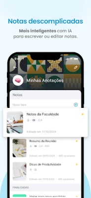 Eleve sua produtividade a um novo patamar com recursos inteligentes e inovadores. Com o uList, suas anotações ganham vida com a assistência da inteligência artificial, permitindo que você capture informações e adicione documentos com uma fluidez sem precedentes. Envolva suas listas e notas com fotos, vídeos e links, personalizando cada registro de maneira visualmente rica e informativa. Gerencie sua agenda diária com maestria, programando tarefas, acompanhando hábitos e personalizando rotinas que realmente se adaptam ao seu estilo de vida, garantindo que você esteja sempre um passo à frente em seus objetivos e metas diárias.